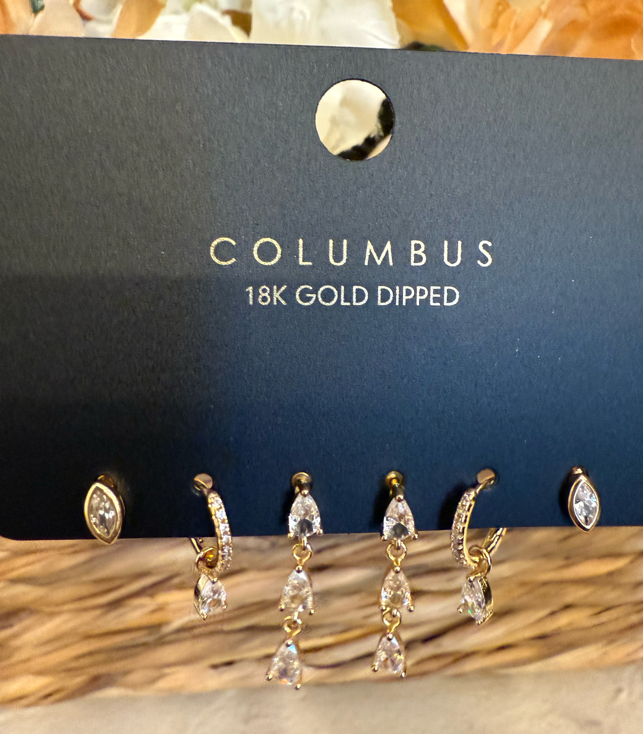 Elegant, luminous, and delicately detailed — the Aurora Drops Set brings refined sparkle to any occasion. Dipped in 18K gold, this four-piece earring set features a mix of dainty marquise studs, pavé huggies, and cascading teardrop dangles that catch the light with every move. Designed for effortless versatility, you can wear them solo for subtle glam or layered together for a radiant, multi-dimensional look.