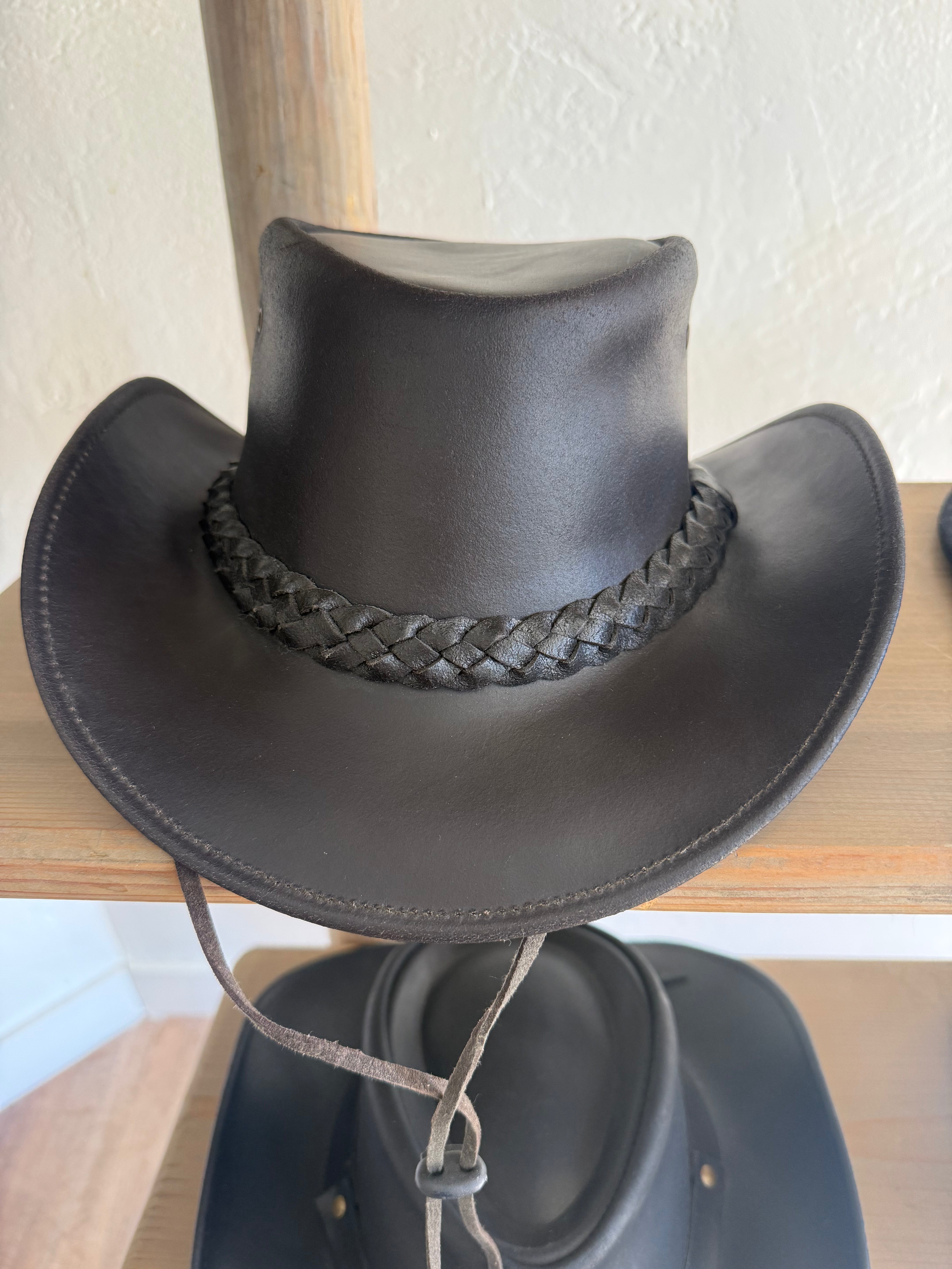 Crafted from dark brown genuine leather, The Canyon Ridge Hat captures the rugged beauty of the West. Its structured crown and wide brim provide timeless shape, while the braided leather band adds texture and character. Durable yet refined, this hat is built for open skies and endless horizons—making it the perfect companion for both everyday wear and adventurous escapes.