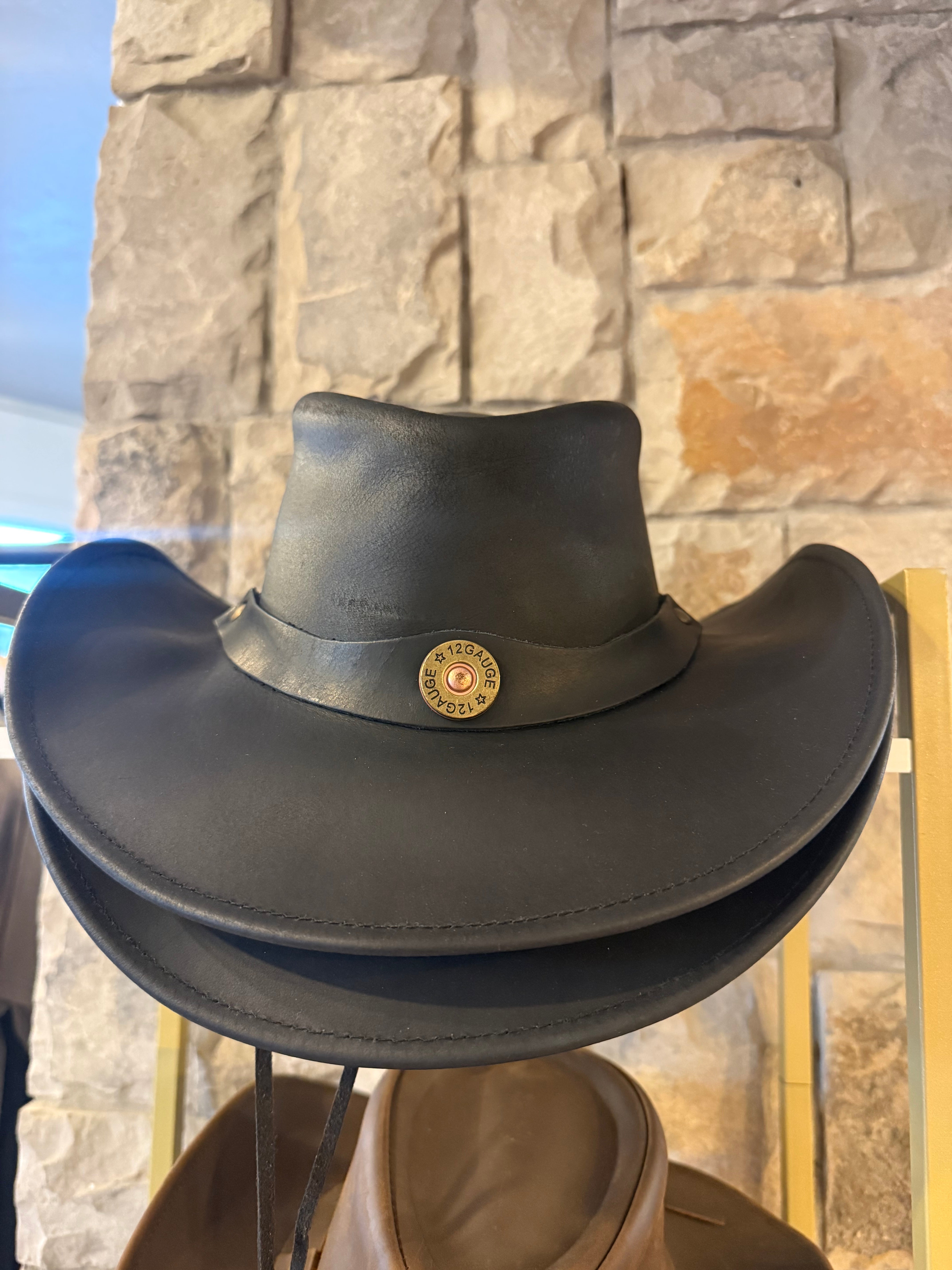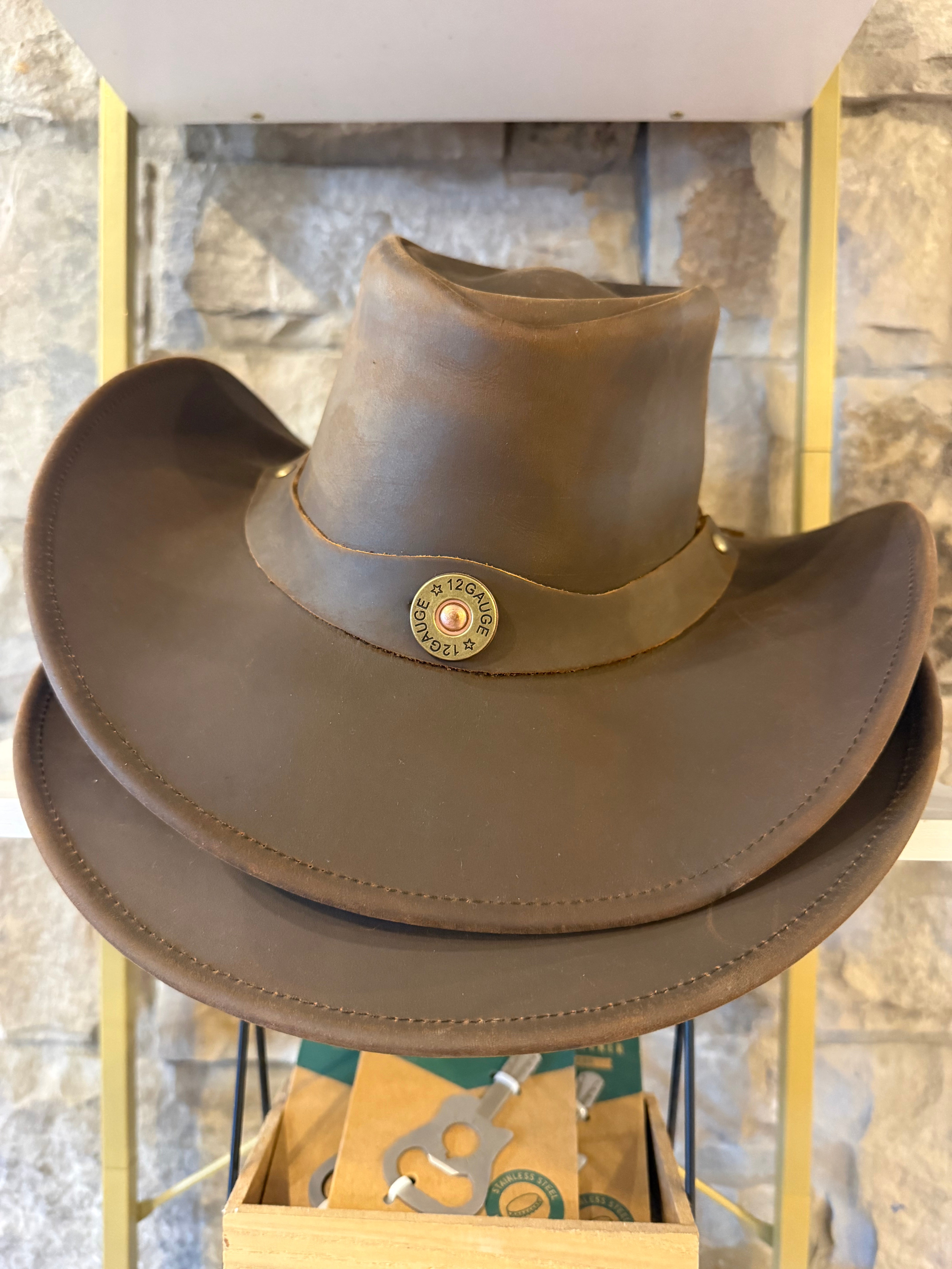 Crafted from rich genuine leather, The Outlaw Hat brings rugged western spirit with a modern edge. Its structured crown and wide, curved brim gives it timeless character.