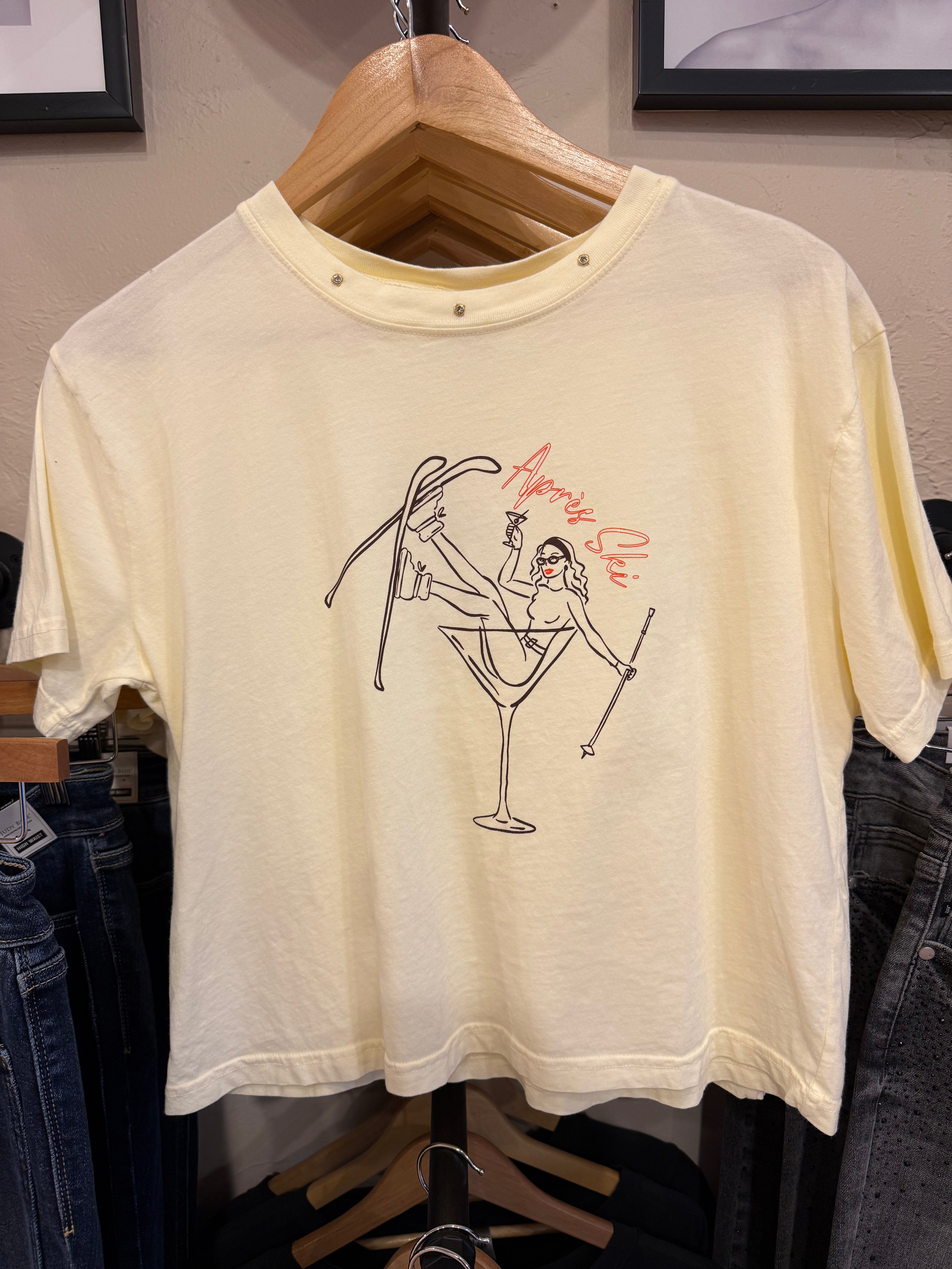 A little cheeky, a lot iconic. Our Après Ski Tee features a hand-drawn martini glass graphic with a confident alpine muse—because après is just as important as the slopes. Designed on a soft, lightweight cream tee with a relaxed fit, it’s effortlessly cool and easy to style year-round.