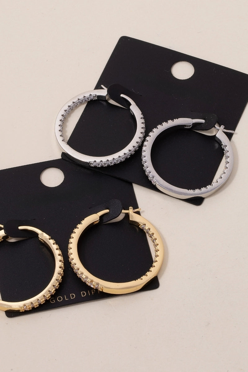 Designed to catch the light from every angle, the Afterglow Hoops bring effortless glamour to any look. Featuring shimmering rhinestone details set against a polished silhouette, these hoops strike the perfect balance between sparkle and sophistication. Whether styled for a night out or worn to elevate an everyday outfit, they deliver that unmistakable after-dark glow.