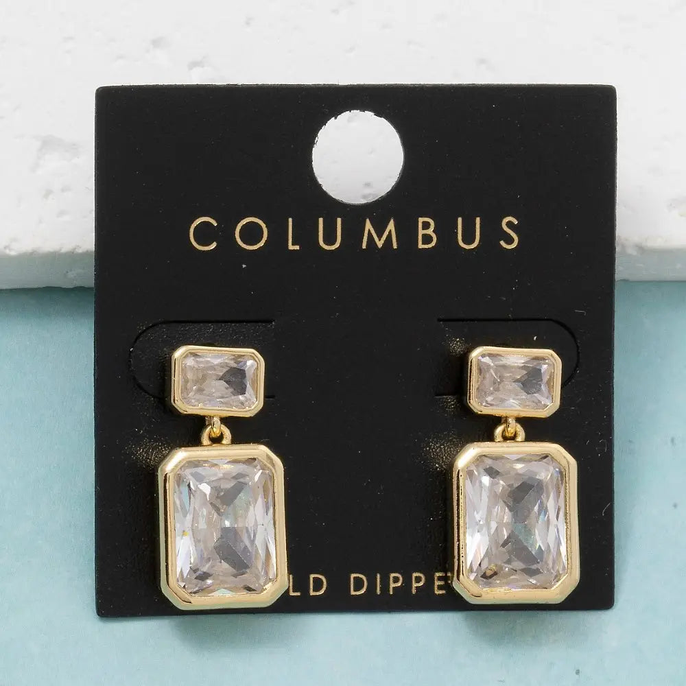 A statement of pure sophistication, The Luxe Gem earrings feature a double-crystal design framed in radiant gold-dipped settings. The top rectangular stone adds a subtle glimmer, while the larger drop gem creates a bold, high-end sparkle that elevates any look. Glamorous yet timeless, these earrings are the perfect finishing touch for evenings out, holiday events, or any moment that calls for a little luxury.