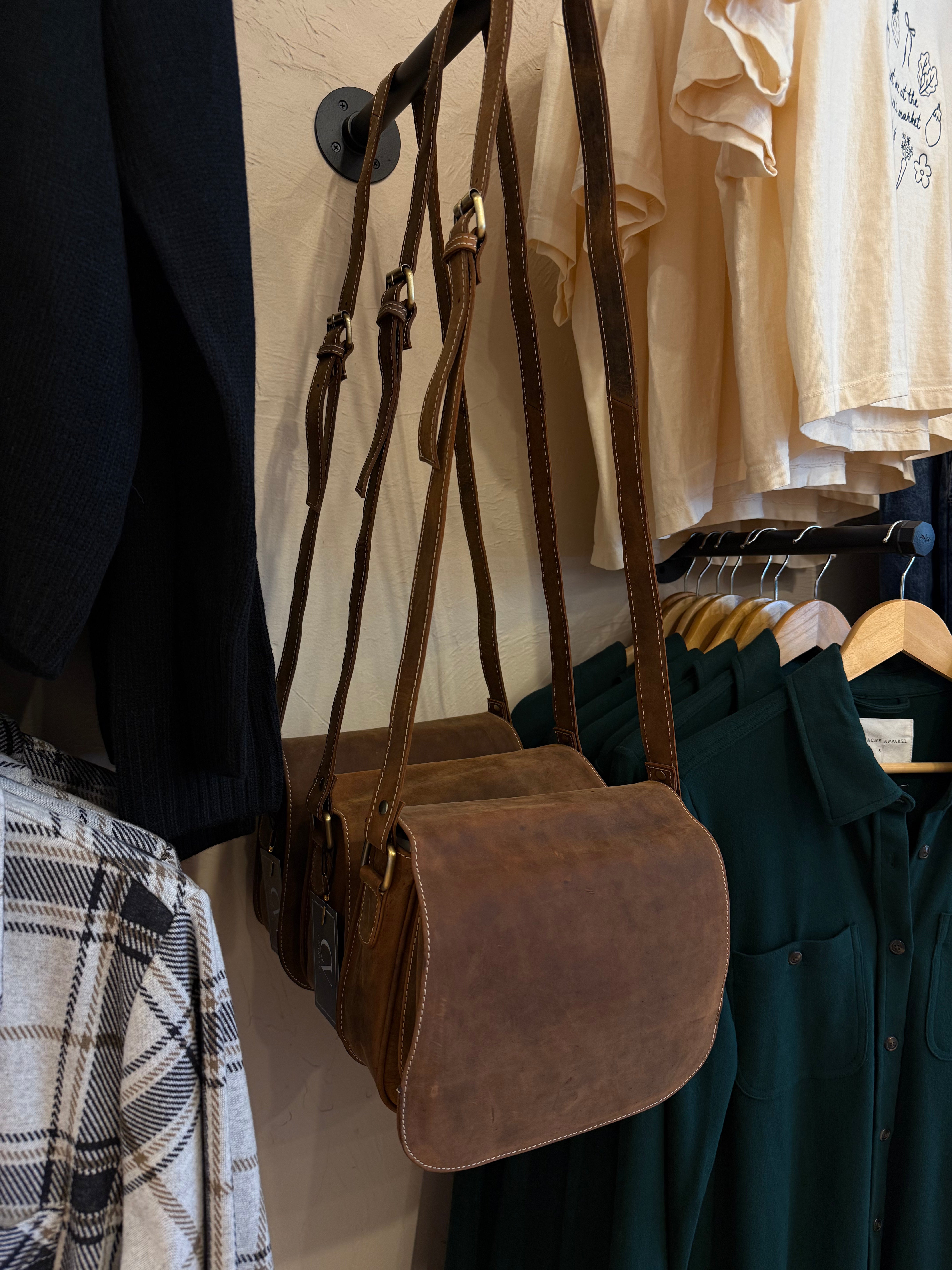 Crafted from genuine distressed leather, the Saddle Creek Crossbody is designed with timeless western charm and everyday function in mind. Its structured flap closure and contrast stitching highlight the artisanal craftsmanship, while the adjustable strap makes it comfortable for hands-free wear. Roomy enough for your essentials yet compact enough for daily use, this bag is the perfect blend of rustic elegance and modern practicality.