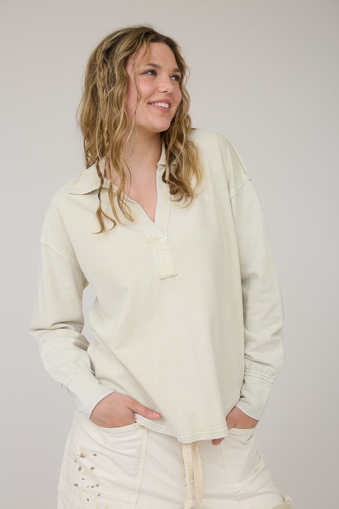 Slip into effortless ease with the Stonewash Escape Top, crafted in a soft, vintage-washed finish that gives it that perfectly lived-in feel. Featuring a collared neckline, relaxed drop-shoulder silhouette, and subtle seam detailing front and back, this pullover blends casual comfort with elevated style. Its lightweight yet durable design makes it the perfect piece for layering or wearing solo, whether you’re lounging, exploring, or styling it up with your favorite denim.