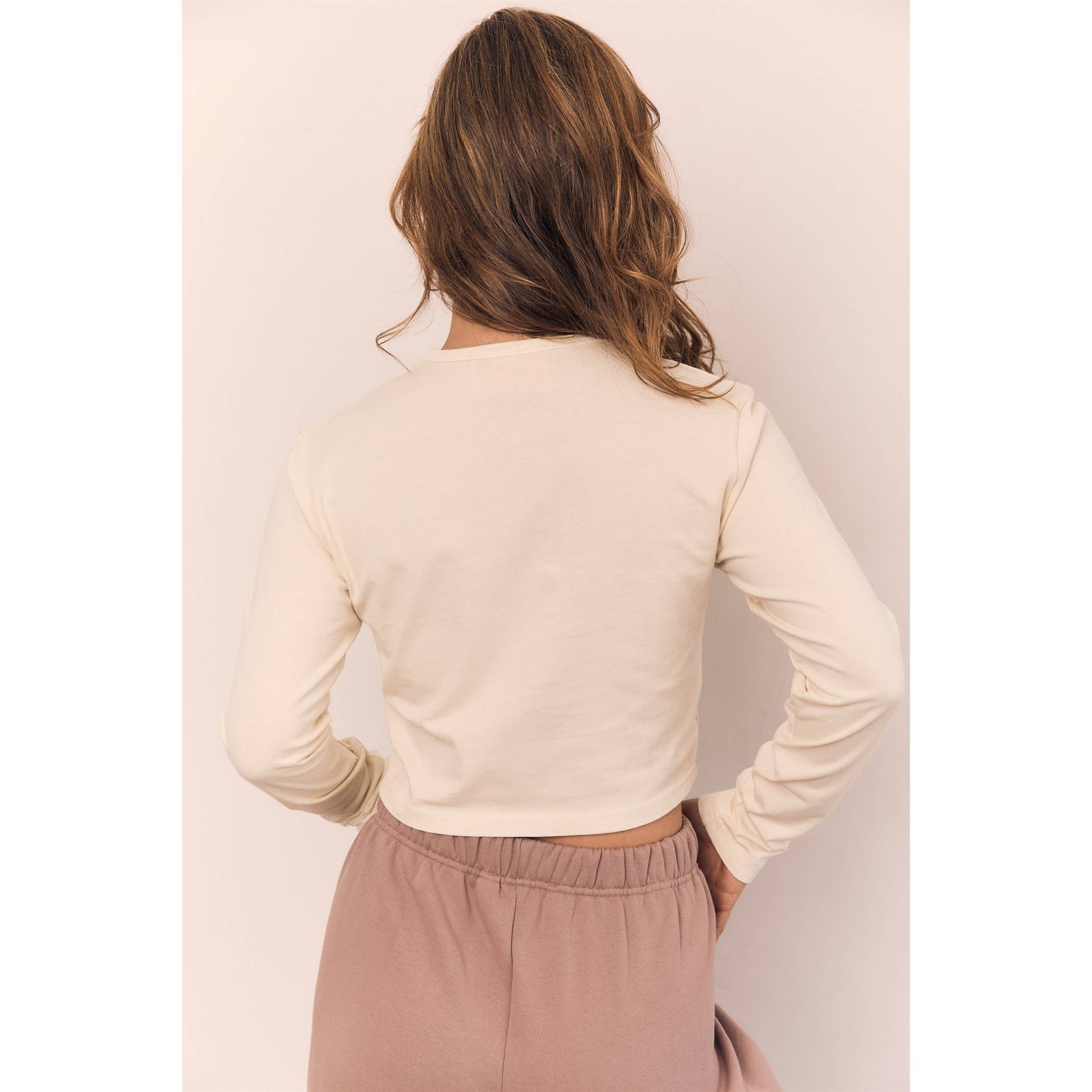 A standard fit long sleeve tee with a clean cropped cut, simple ,comfy and just the right touch of feminine. Wear it solo or layer it under jackets and knits. Your new everyday base layer, elevated.