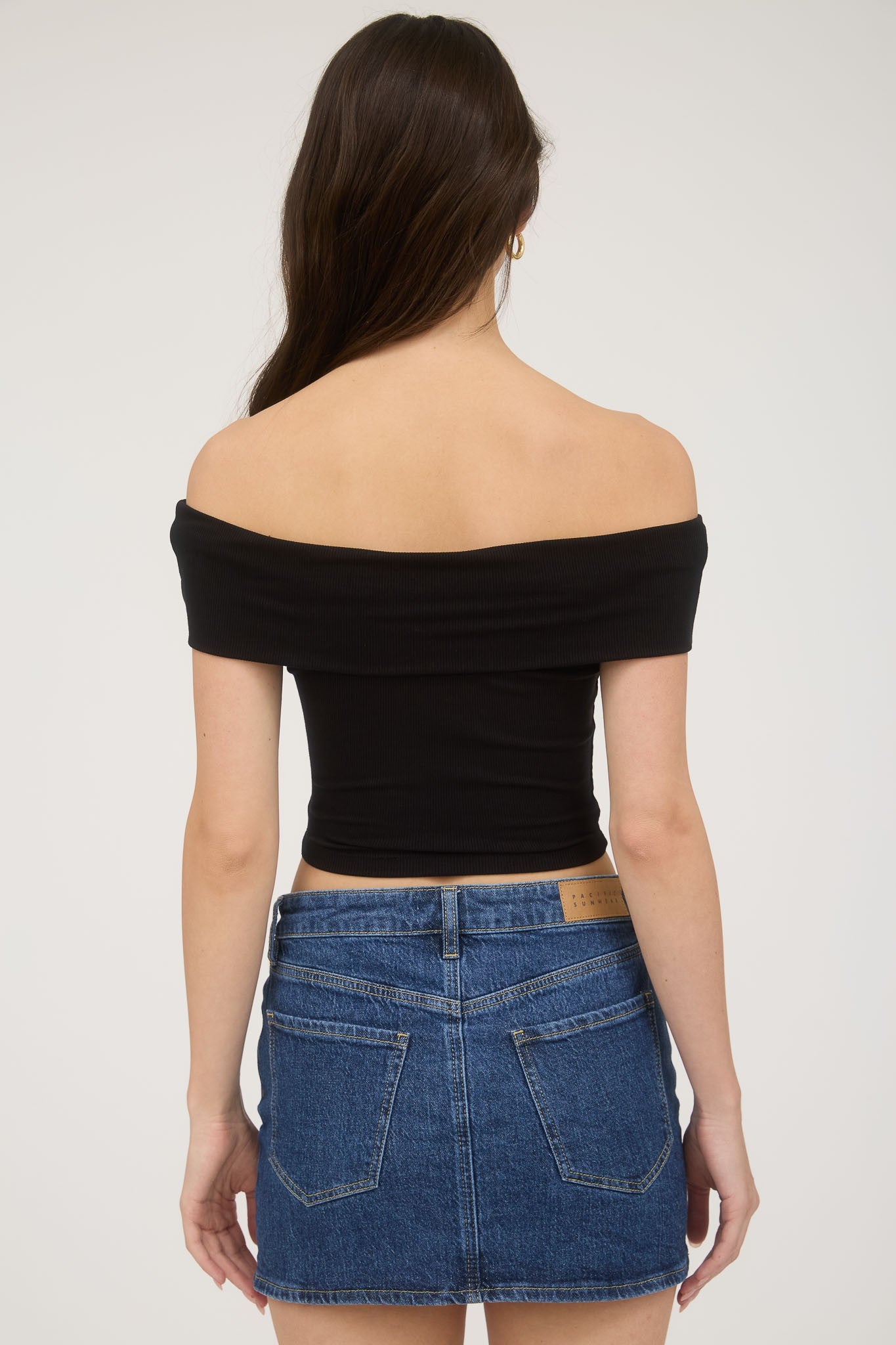Chic, sultry, and endlessly versatile—the Midnight Muse top features an off-the-shoulder neckline with gathered ruching detail that adds a subtle touch of elegance. Made from a soft ribbed knit, this cropped silhouette hugs in all the right places, making it the perfect piece for pairing with denim, skirts, or layered jewelry for an effortlessly elevated look.